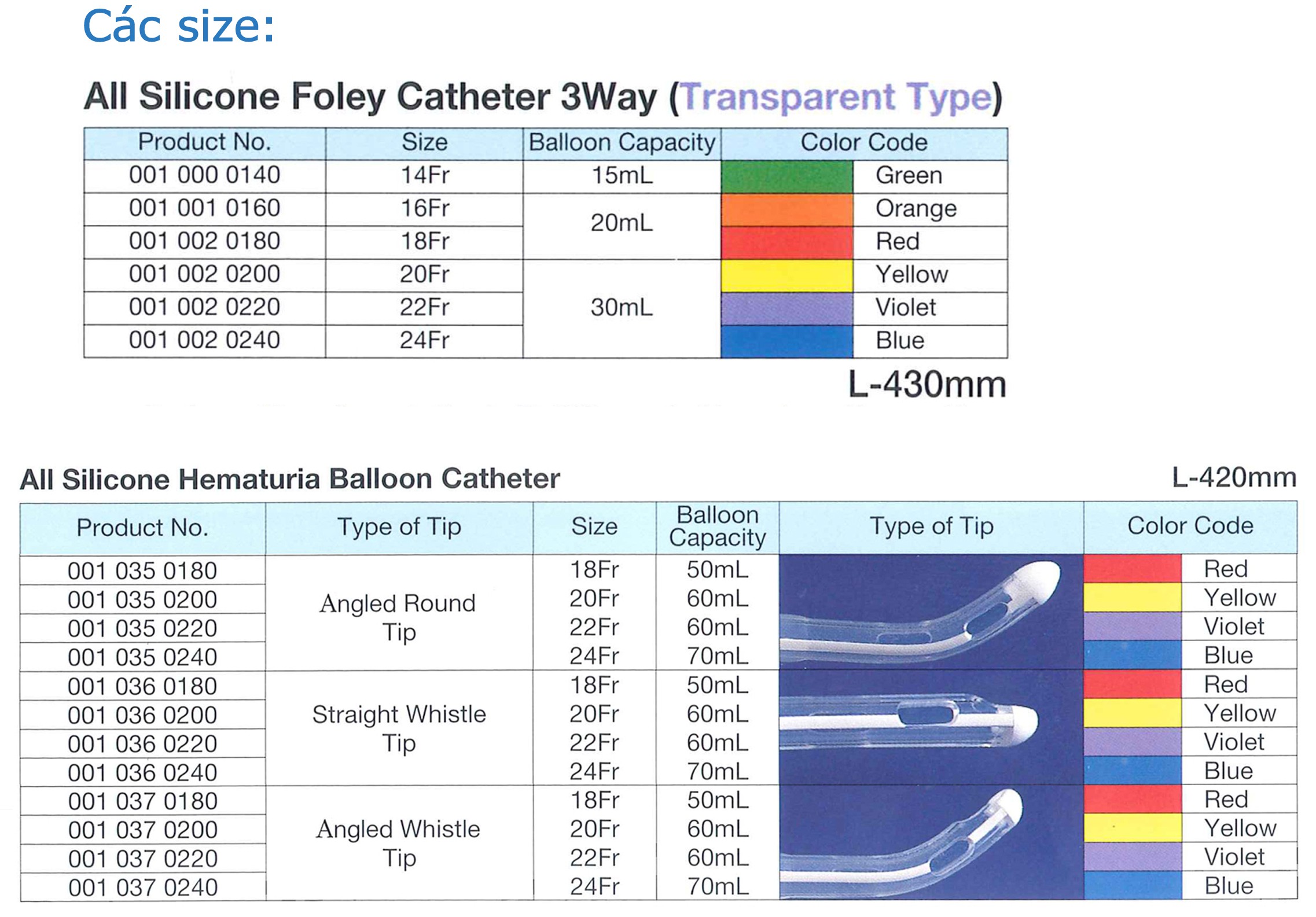 -Các kích thước14Fr-15ml, 16Fr-20ml, 18Fr-20ml, 20Fr-30ml, 22Fr-30ml, 24Fr-30ml. Dung tích bóng 10ml.